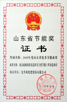 公司“液態(tài)硫酸銨轉(zhuǎn)鼓造粒復(fù)合肥節(jié)能工程改造項(xiàng)目”榮獲山東省優(yōu)秀節(jié)能成果獎(jiǎng)。這是公司繼2008年“無(wú)烘干流程塔式熔體造粒復(fù)合肥生產(chǎn)工藝”受省政府通報(bào)獎(jiǎng)勵(lì)之后,又獲得的第二項(xiàng)省政府表彰的 “優(yōu)秀節(jié)能成果獎(jiǎng)”,標(biāo)志著公司節(jié)能減排工作躍上了一個(gè)新的臺(tái)階,節(jié)能減排創(chuàng)新取得了顯著成效。(李元峰