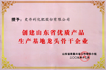 7月27日,在山東省諸城市召開的全省創建優質產品生產基地現場會上,公司榮獲山東省質量興省工作領導小組頒發的“創建山東省優質產品生產基地龍頭骨干企業”證書。
