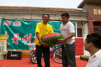 7月12日,在山東省章丘市高官寨鎮舉行的西瓜大賽上,該鎮宗家村瓜農宗光春施用史丹利54%三安復合肥種植的西瓜,以單個重量65斤,勇奪“西瓜王”稱號。